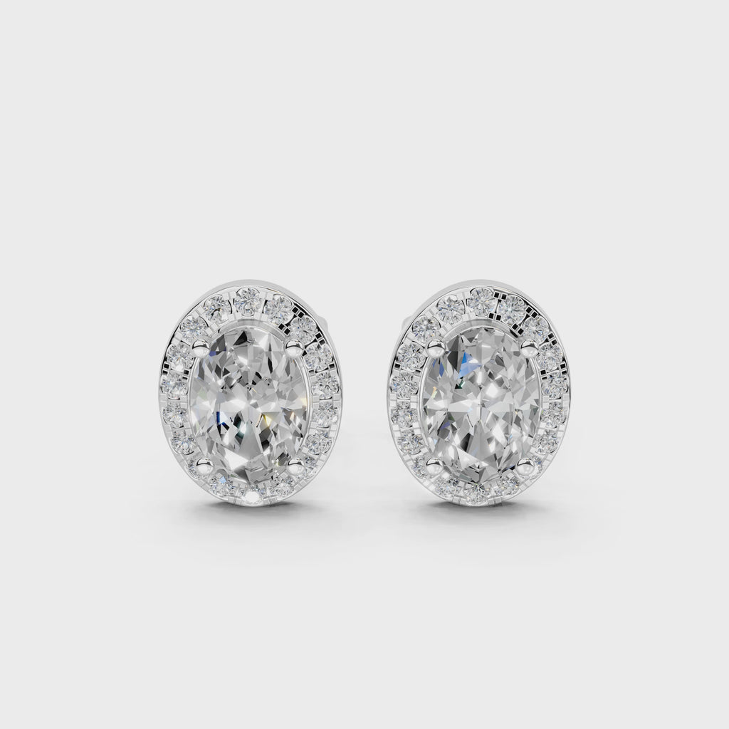 Estilo de arete: Aretes de diamantes cultivados en laboratorio de talla ovalada de 2,48 cttw; estos aretes presentan diamantes cultivados en laboratorio de talla ovalada rodeados por un halo deslumbrante; cuentan con un total de 2,48 quilates para una apariencia radiante y sofisticada.