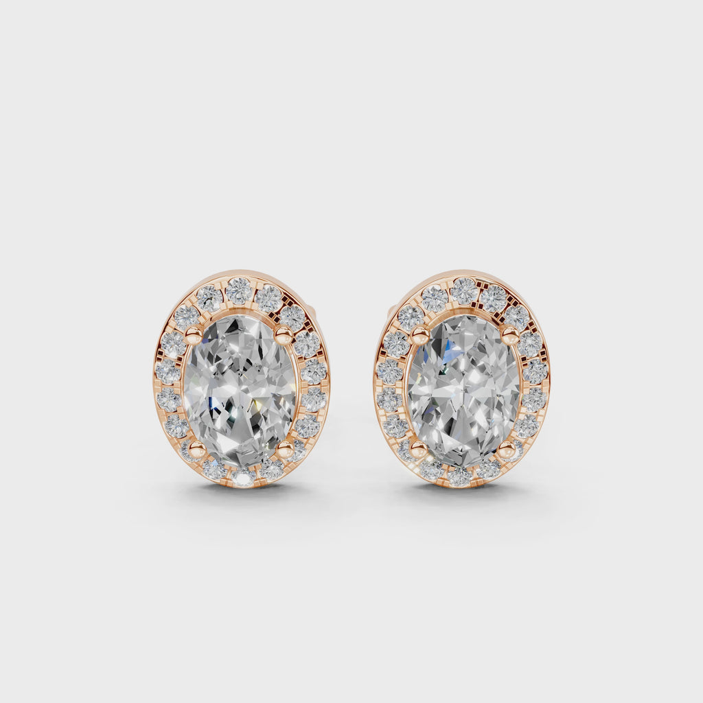 Pendientes de diamantes cultivados en laboratorio de 2,48 quilates con corte ovalado de Halo
