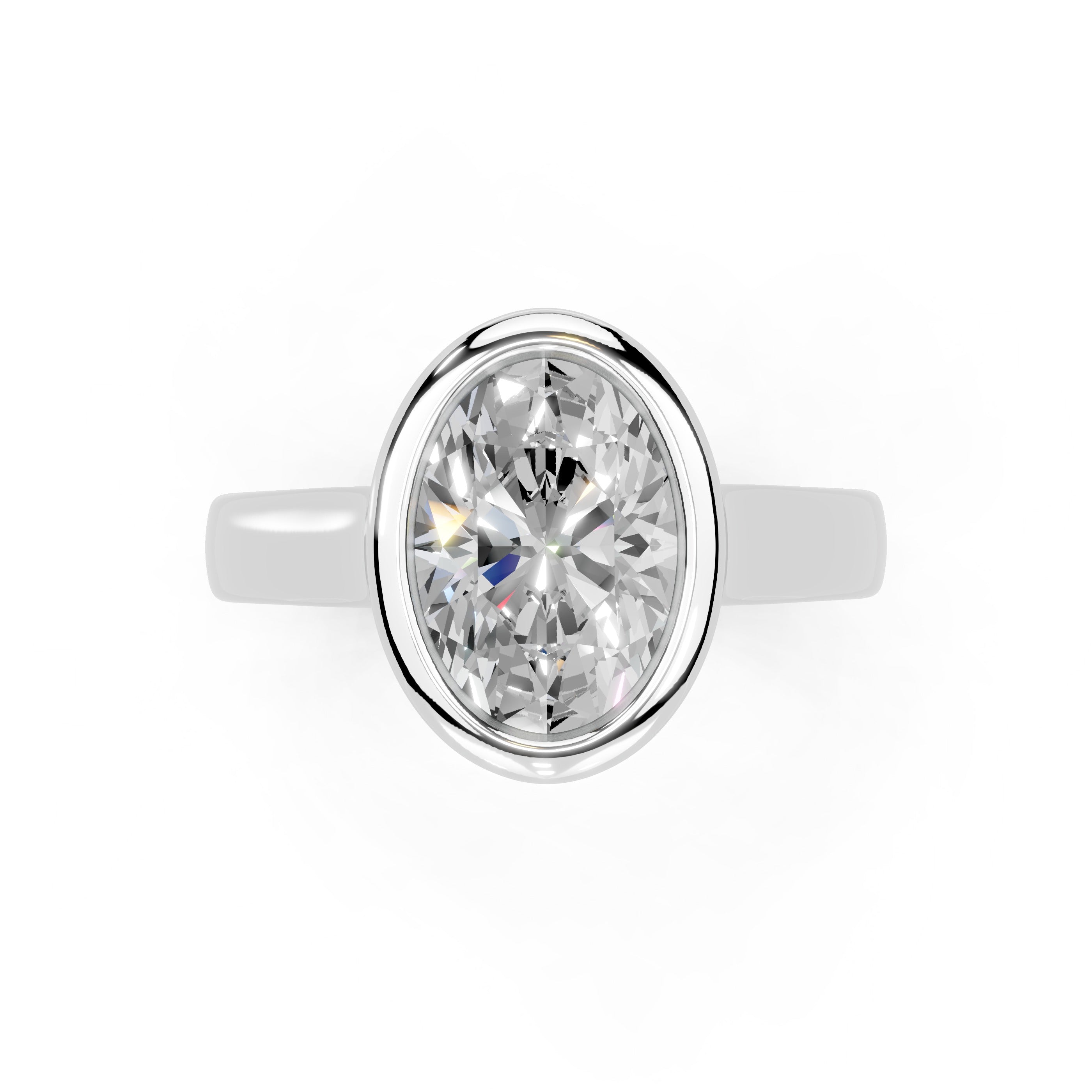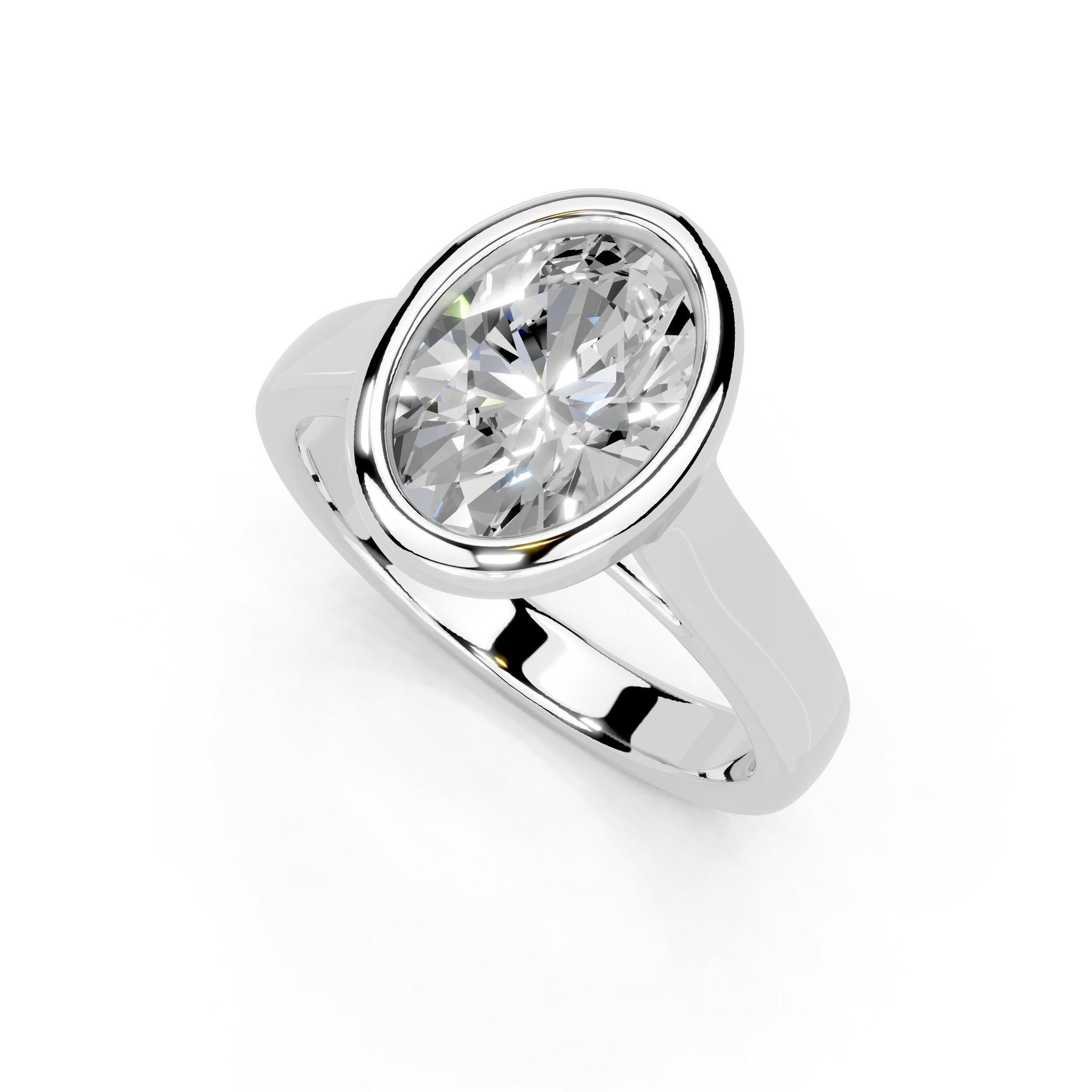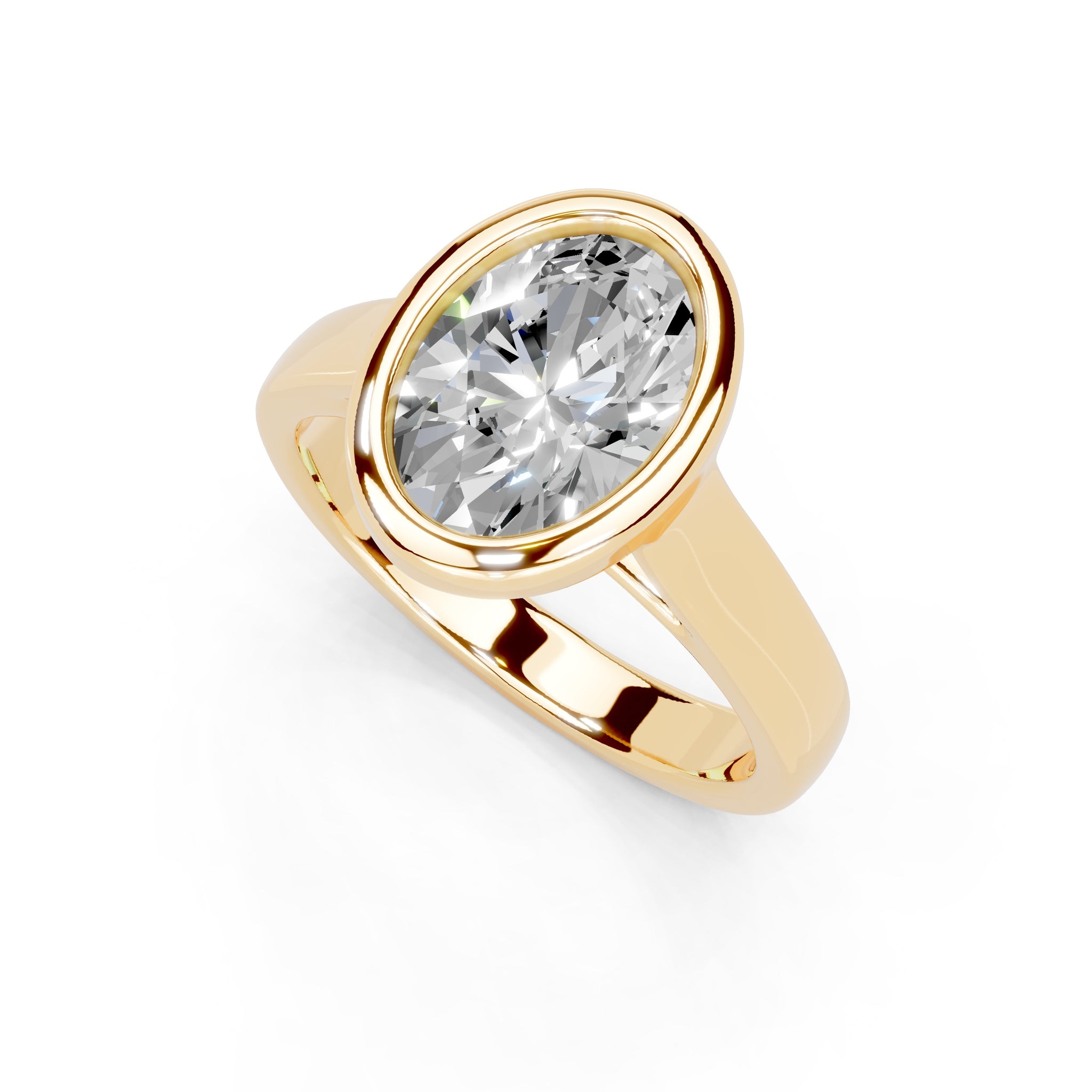 Oval Cut Bezel Setting Lab Grown Diamond Engagement Ring