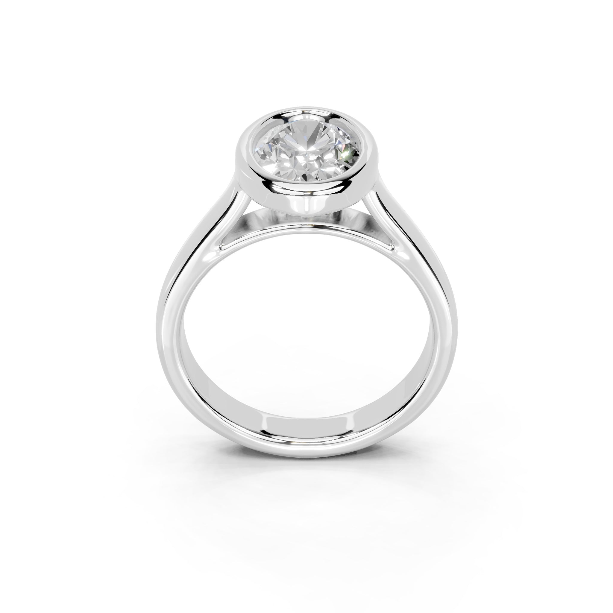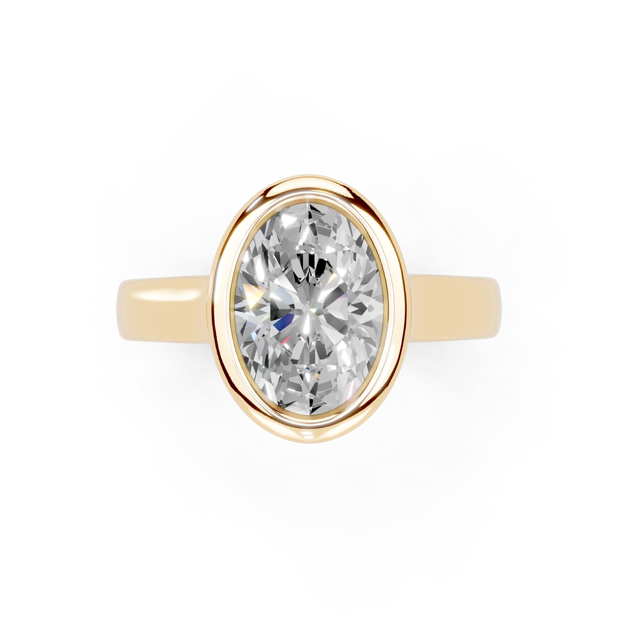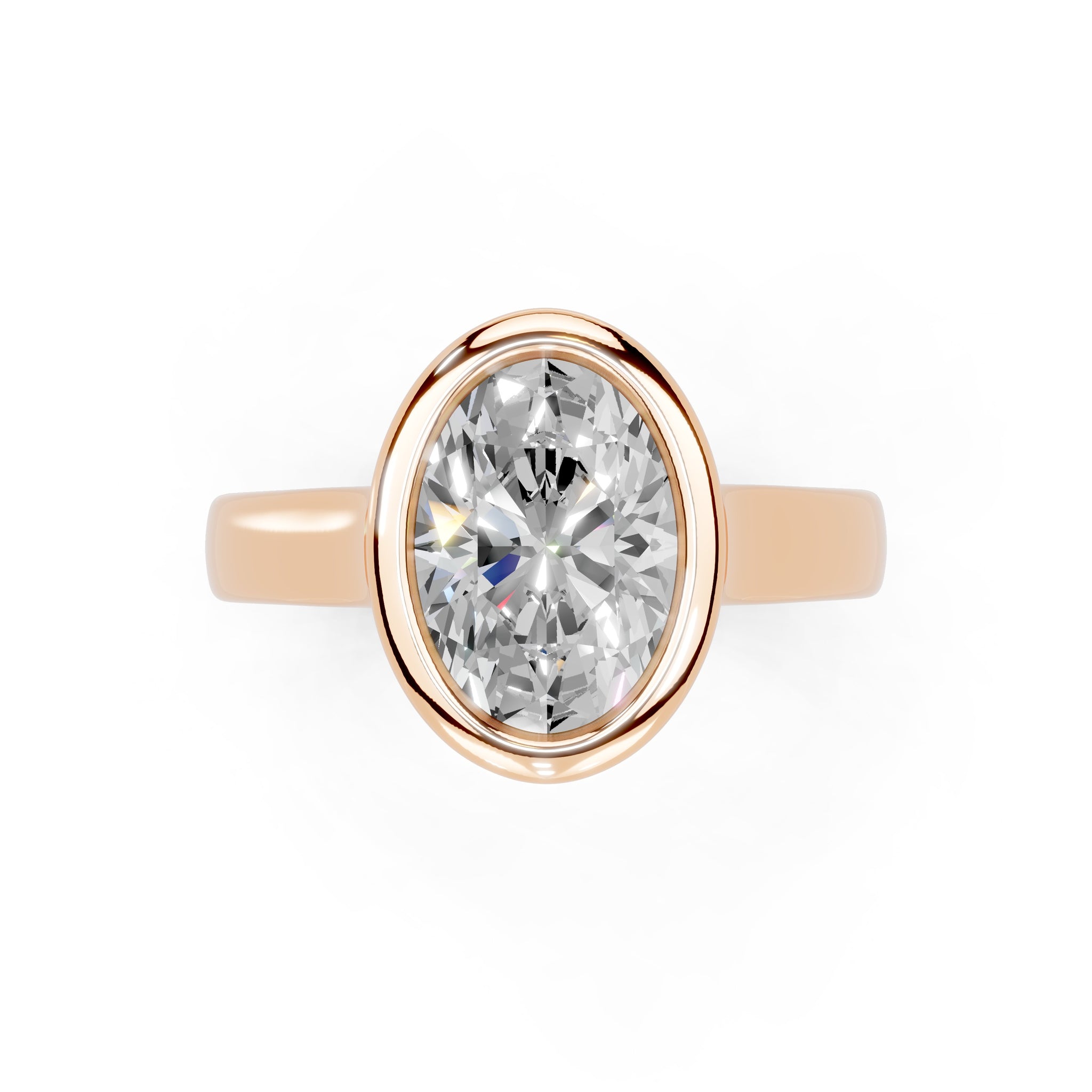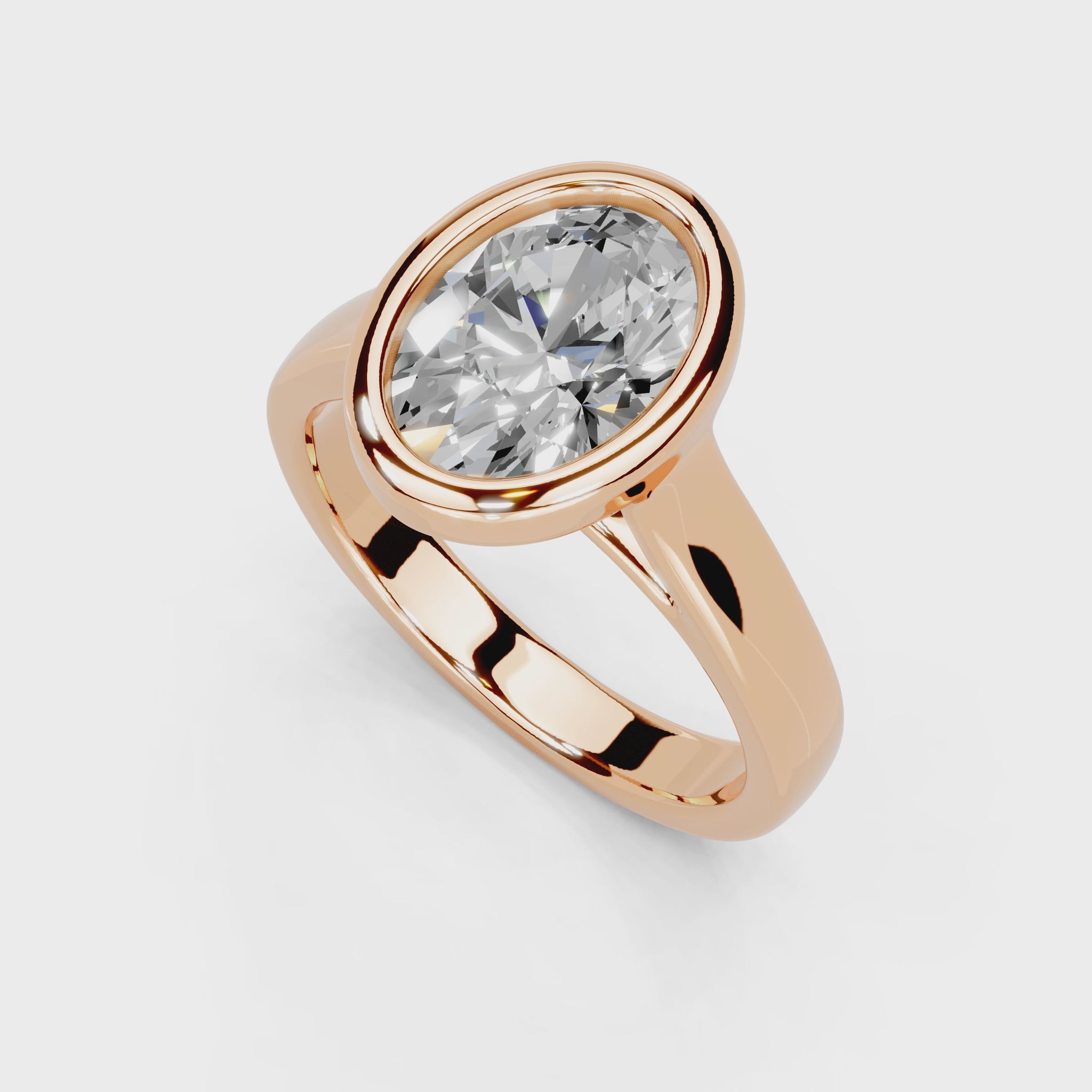Oval Cut Bezel Setting Lab Grown Diamond Engagement Ring