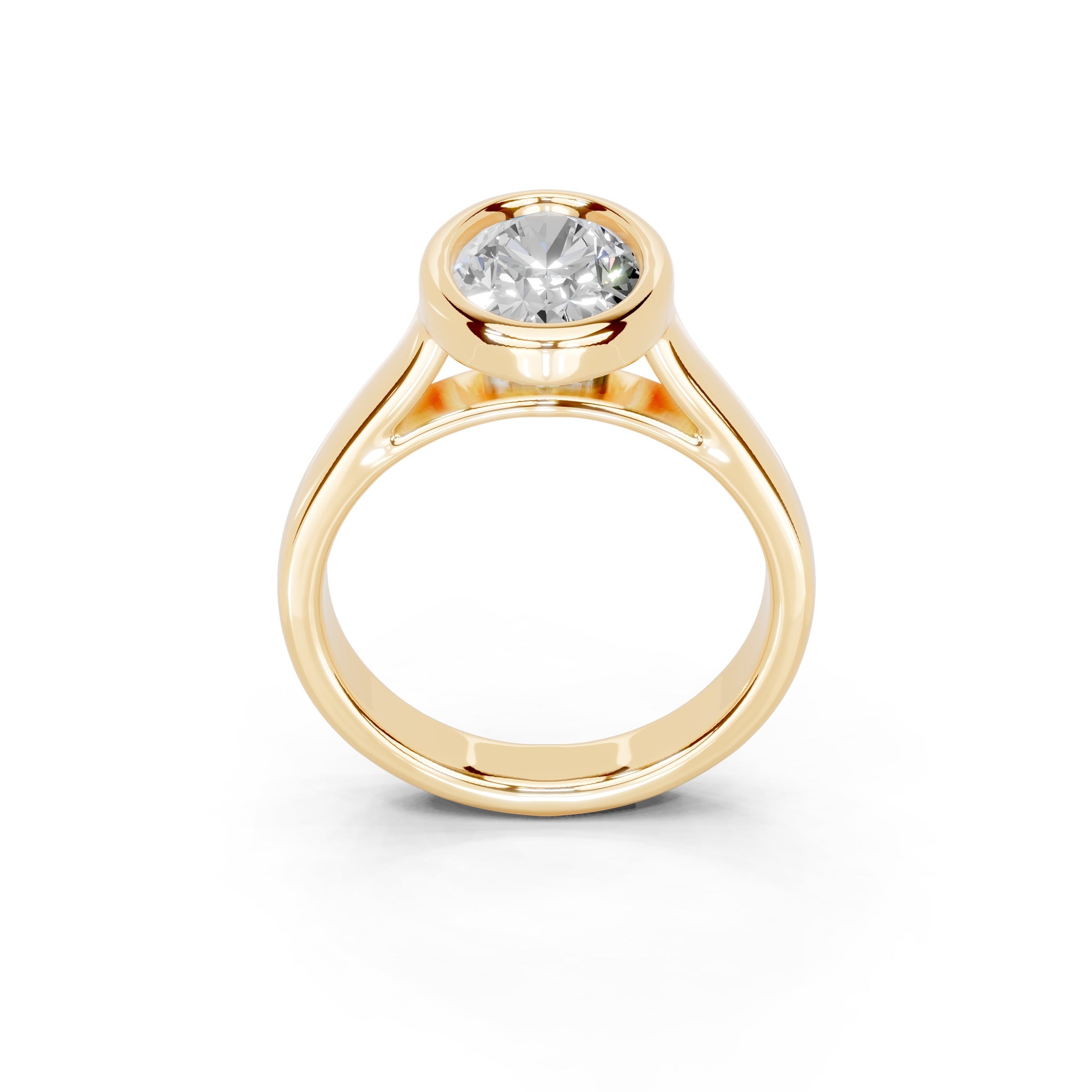 Engagement Ring Style: The Oval Cut Bezel Setting Lab Grown Diamond Engagement Ring features a stunning oval-cut diamond securely set in a sleek bezel, which beautifully enhances its elongated shape and elegance. The minimalist bezel design not only highlights the diamond's brilliance but also provides a modern and sophisticated look, making it a perfect choice for contemporary brides.